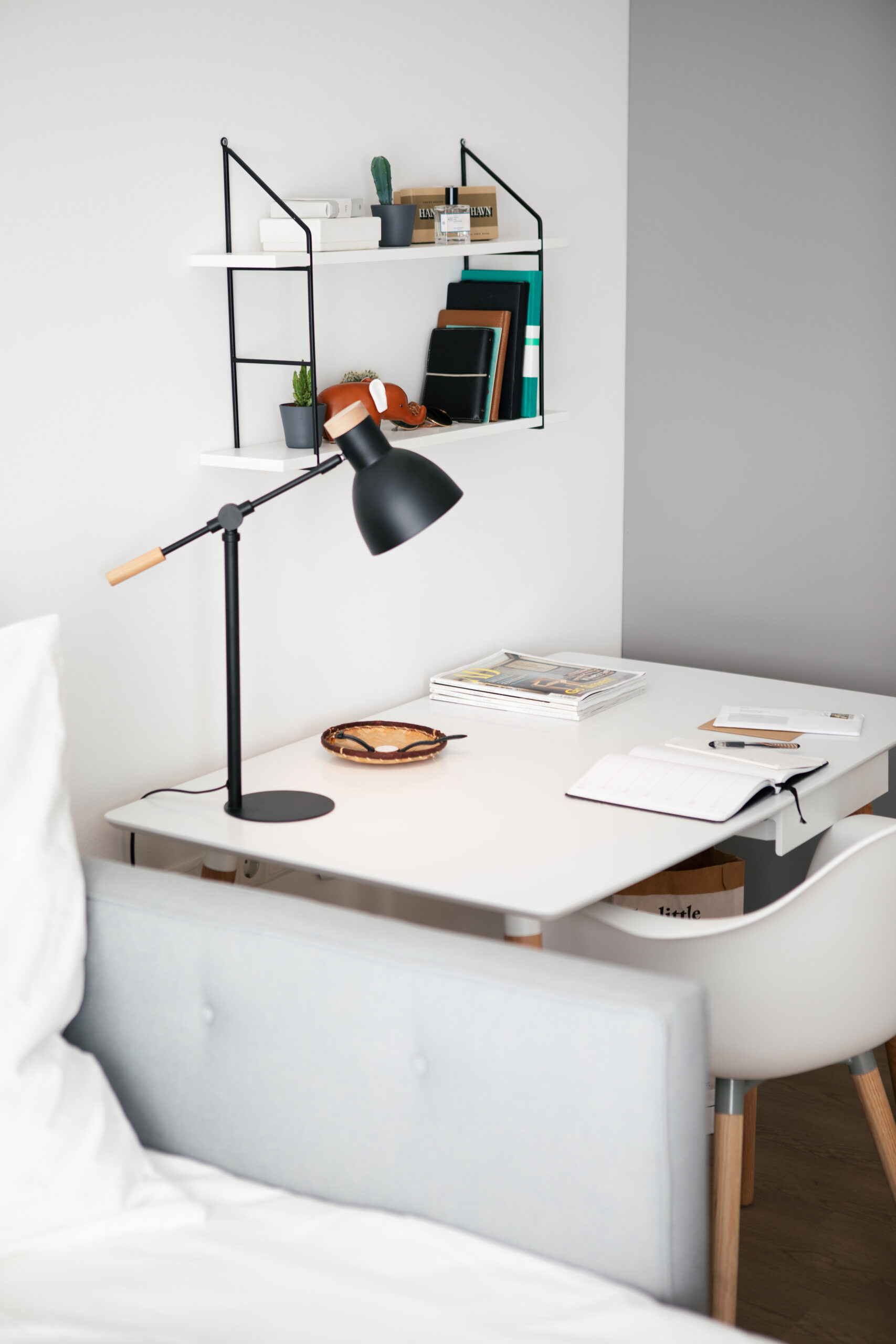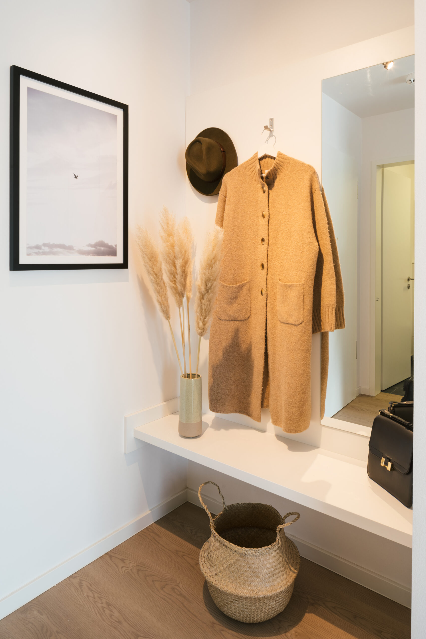 Der Arbeits- und Essbereich fügt sich nahtlos in das Raumkonzept ein und bietet Flexibilität für Alltag und Aufenthalt. Große Fensterflächen lassen viel Tageslicht herein und unterstreichen die luftige Wirkung des Apartments.